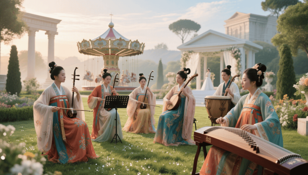 在民乐演奏会基础上增设“游客点歌”环节,游客扫码点歌,被选中者不仅能近距离与演奏者互动,还可在指导下体验简单乐器演奏,沉浸式感受国乐魅力。
