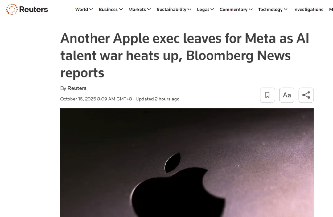 事实上,今年苹果 AI 团队核心人才流失现象较为明显。团队内部名为 Apple Foundation Models 的约十几名成员已相继离开,其中包括该团队创始人兼首席科学家 Ruoming Pang,他与部分同事一同加入 Meta,而 Meta 目前正组建名为 Superintelligence Labs 的新团队。