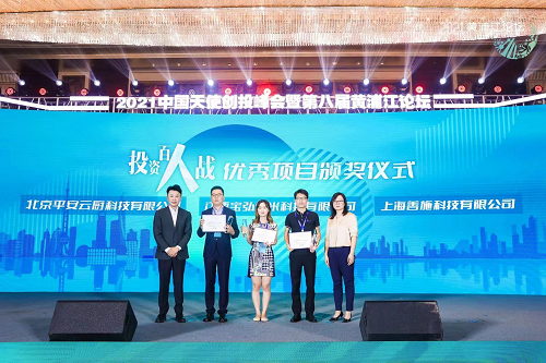 投资百人战是黄浦江论坛的传统项目,今年百人战收到近百个报名项目,设置科技金融、数字消费、医疗健康、智能制造、绿色科技等赛道。在28日的路演环节,平安云厨科技有限公司、江西宝弘纳米科技有限公司、上海善施科技有限公司脱颖而出,杨浦区金融办副主任张雯琦,智见创始人兼CEO郭炜为三个项目的团队代表颁发奖杯和证书,并为他们颁发天使令。他们将在一年的时间内可以约见天使创投的投资人。