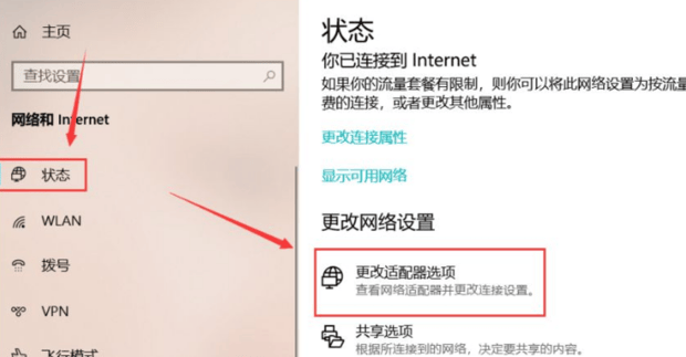 1.右键任务栏网络图标→网络和 Internet 设置→更改适配器选项→右键当前网络→属性。