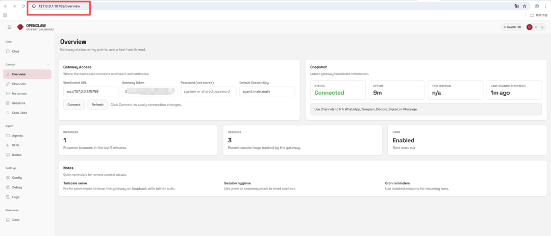该地址仅支持本地网络访问。若需在外部网络环境下管理网关,官方文档提示我们需借助 Tailscale 或 VPN 等代理工具,但这些方式在国内网络环境中往往体验不佳。参考文档