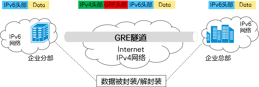 GRE可以对某些网络层协议(如IPX、IPv4、IPv6等)的报文进行封装,使封装后的报文能够在另一种网络中(如IPv4)传输,从而解决了跨越异种网络的报文传输问题。