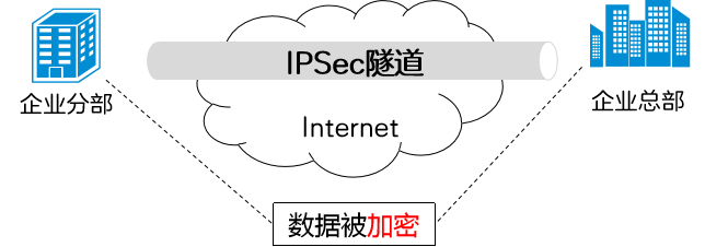 IPSec(IP Security) VPN一般部署在企业出口设备之间,通过加密与验证等方式,实现了数据来源验证、数据加密、数据完整性保证和抗重放等功能。