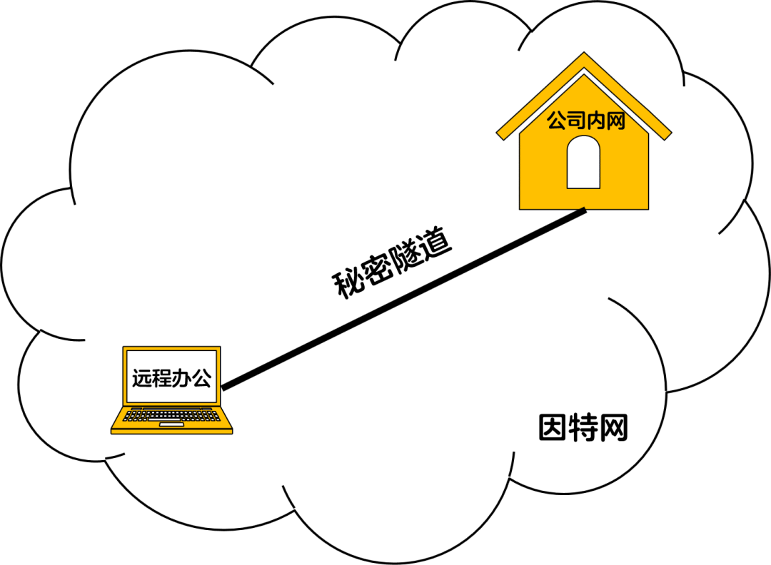 VPN:(Virtual Private Network),学名虚拟专用网络,便可以帮你和公司之间搭建这么一条“秘密隧道”。当你通过VPN访问公司内网时,数据传递全部通过“秘密隧道”悄悄进行,这样就保证了你和公司之间的网络通讯是安全私密的。