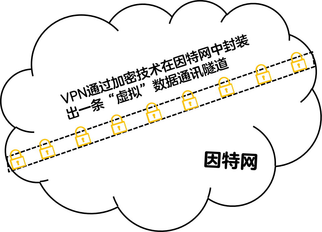 但是这条隧道并不是真实存在的,而是通过数据加密技术封装出来的一条虚拟数据通信隧道,实际上它借用的还是互联网上的公共链路。