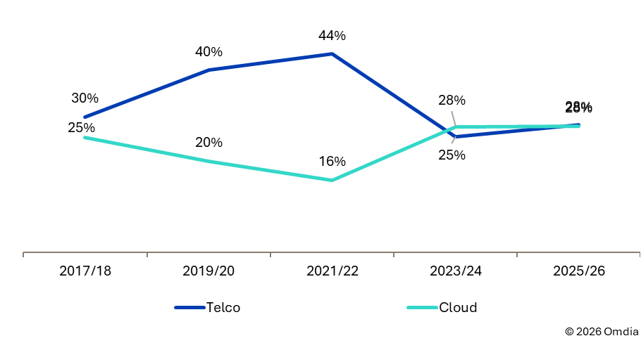 ·大型“云原生”企业。那些诞生于互联网环境或已将业务全面迁移至云端的企业(如Flutter和Kambi),往往倾向于将全部资源押注在单一的云服务合作伙伴身上。这类企业能够从专注于某一个特定的云生态系统中获益良多。通常情况下,它们在云环境之外几乎没有太多网络足迹。因此,电信运营商很难在这一细分市场中赢得托管网络服务的订单。不过,这类企业依然需要底层的无线及有线网络连接服务。