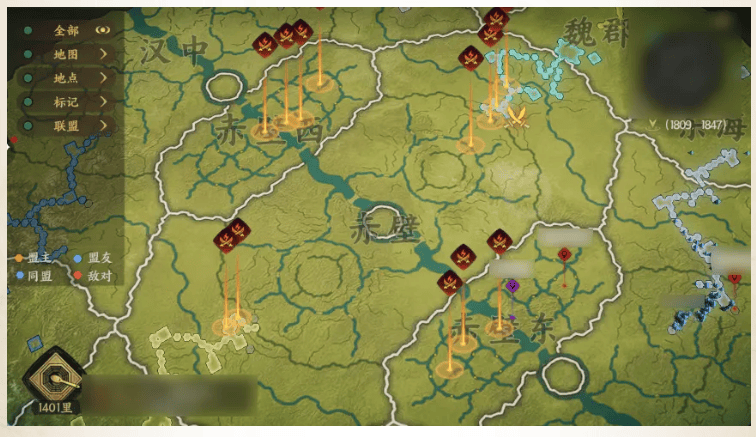 世界地图包含州郡、关卡、城池等大尺度地理节点,是联盟对抗、攻城略地的核心战场。玩家通过主线任务解锁军团讨伐、联盟攻城战后,可与盟友一同宣战城池,每日8:00至21:00为攻城战时间,占领城池可提升联盟势力,参与玩家还能获得声望奖励。地图中的关隘、河流、高地等地形会直接影响战斗策略,例如在开阔平原遭遇骑兵部队时,可将弓兵布置在高处远程输出,枪兵在前排布阵防御,利用地形优势克制敌军。
